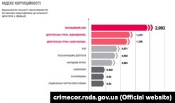 Якщо скласти рейтинг у відносних показниках, то картинка зовсім міняється. Лідерами за кількістю корупційних законопроектів щодо числа депутатів у фракції стають «Опозиційний блок», депутатські групи «Відродження» та «Воля народу», а на четвертій сходинці опиняється БПП.