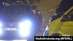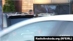 Охоронець веде жінку до автівки, зареєстрованої на ГПУ