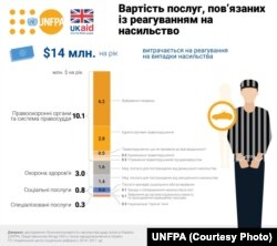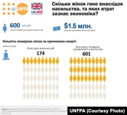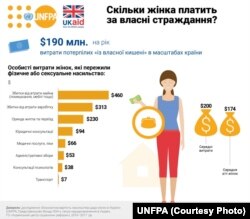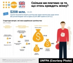 Від насильства (фізичного та сексуального) страждають 1,1 мільйона жінок на рік, згідно із дослідженням UNFPA. Це обходиться українському суспільству, за підрахунком аналітиків, у 208 мільйонів доларів (0,23% ВВП країни у 2015 році).