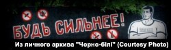 От вокзала поднимаешься по эстакаде к памятнику Ворошилова, дальше в сторону двадцатой школы…Здесь один из главных спортивных призывов города – «Будь сильней!». На граффити изображен парень в футболке «Чорно-білі». Красным на фоне перечеркнуты знаки «алкоголь», «курение», «наркотики». После того, как на «20-ке» появился такой призыв, эта площадка стала по истине местом спортивных турниров. Тут – и фан-соревнования по подтягиваниям, и баскетболу, и стритворкаут, и даже массовые пробежки заканчивались именно здесь.