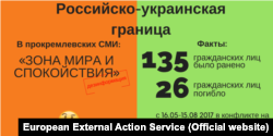 Інший сюжет, що суперечить першому, каже, що миротворці не потрібні, оскільки кордон між Україною і Росією – «зона миру і спокою». Автори огляду називають це дезінформацією і пропонують подивитись на число загиблих у військовому конфлікті в Україні.