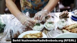 «Сьогодні у нас картопелька домашня, котлетки і млинці з різними начинками», – оголошує меню одна з жінок.