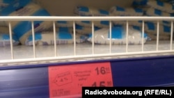 Ціни в Сімферополі, адміністративному центрі анексованого Криму, ми наводимо в російських рублях. Якщо порівнювати гривню і рубль у доларовому еквіваленті, то курс приблизно 1 до 2. За останній місяць подешевшали деякі продукти харчування, аналітики пов’язують цю тенденцію із закінченням курортного сезону. Наприклад, із 53 до 46 рублів подешевшав кілограм цукру, з 43 до 39 рублів літр молока, з 54 до 50 рублів десяток яєць. Також у Сімферополі подешевшала свинина. Однак навіть після падіння ціни м’ясо в окупованому Криму дорожче, ніж на материковій Україні, приблизно на 8%.