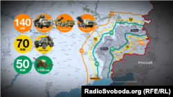 Для ракетних систем залпового вогню «Торнадо-С», «Ураган», «Смерч» і тактичних ракетних систем «Точка–У» віддаленість – 70 кілометрів (зона завширшки 140 кілометрів).