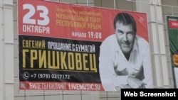 23 жовтня в Сімферополі виступив російський письменник і актор Євген Гришковець з виставою «Прощання з папером». Це не перший його виступ у Криму після подій 2014 року. За свої кримські гастролі він був внесений в українську базу «Миротворець».