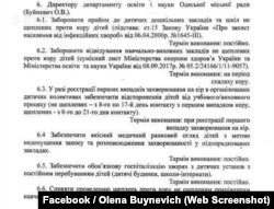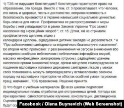 «Йдеться про освіту, а не про відвідування закладу освіти. Освітній заклад може обирати інші, крім уроків, форми організації навчально-виховного процесу. Також в Конституції є стаття 3, в якій чітко визначено: людина, її життя та здоров’я (а ще честь, гідність, недоторканність, безпека) визнані в Україні найвищою соціальною цінністю», – зазначила заступниця директора міського департаменту освіти Ольга Дума.