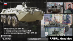 На Донбассе побывали 44 вида новейшего Российского вооружения – такие данные привели активисты сообщества «Информнапалм». Это бронетехника, средства связи, артустановки, системы радиоэлектронной борьбы, рассказывает председатель сообщества «Информнапалм» Михаил Макарук.