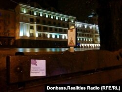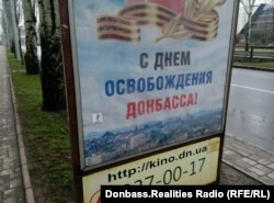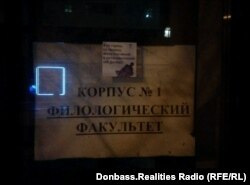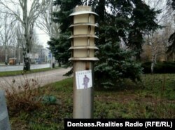 Днями в окупованому російськими гібридними силами Донецьку з'явилися наліпки з цитатами творів Василя Стуса і зображенням фрагментів його барельєфа, який бойовики угруповання «ДНР» демонтували з корпусу Донецького університету в 2015 році. Фото вислали Радіо Донбас.Реалії, проекту Радіо Свобода, жителі міста.