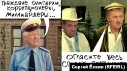 Російський карикатурист Сергій Йолкін продовжує кепкувати над російською реакцією на «Кремлівську доповідь» США на сайті Радіо Свобода: