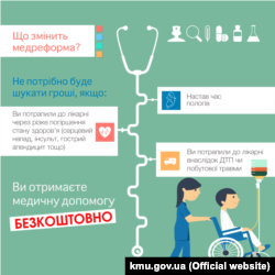 Чимало українців, щоб потрапити до приватного лікаря або приватної клініки, відкладають або позичають гроші. Запровадження ж медичного страхування та державна оплата певних медичних послуг дозволить українцям отримувати у приватних медзакладах якісні послуги безкоштовно, наголошено у відповідних рішеннях українського уряду.