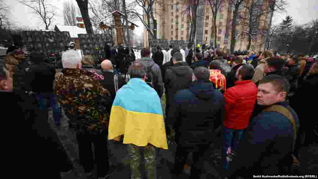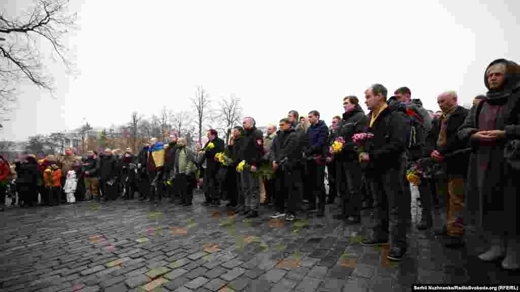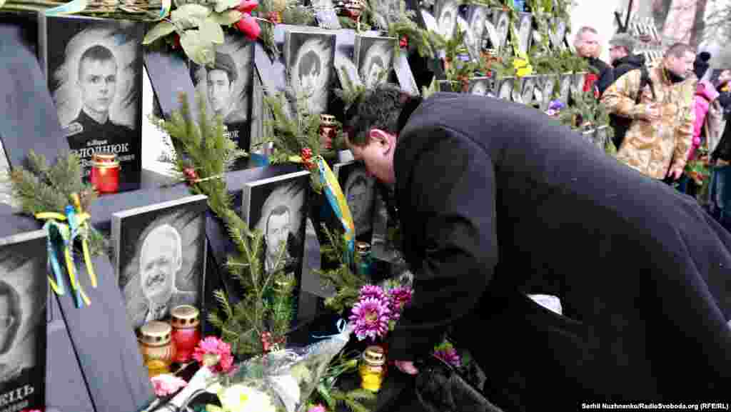У Києві на Алеї Героїв Небесної сотні зранку 18 лютого відбувся молебень пам’яті загиблих учасників Революції гідності. У заході взяли участь понад 100 людей.