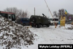 Что именно будут ремонтировать на засыпанной гравием обочине, полицейские внятно не объяснили. Все микроавтобусы остановили в двух километрах от КПВВ «Майорское» и до пункта пропуска люди вынуждены идти пешком.