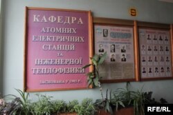 Старий ліфт різко випльовує кнопку з цифрою «дев’ять», двері шумно відкриваються і перед очима з’являється стенд із будовою тепловидільних елементів (частина ядерного реактора атомної електростанції).