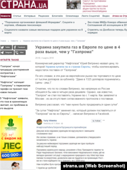 Так, наприклад, сайт Life.ru пише: «Комерційний директор «Нафтогазу» Юрій Вітренко заявив, що для компенсації нестачі палива компанії довелося закуповувати газ в Європі, а його ціна виявилася в чотири рази вища, ніж у «Газпрому».