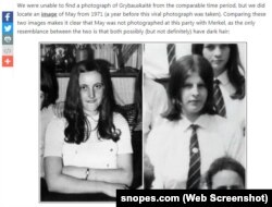 Видання The Snopes також вирішило перевірити факти. Журналісти знайшли і порівняли дівчину із представленого фото і світлину з Терезою Мей, зроблену у 1971 році (на рік раніше) і дійшли висновку, що на фото не вона.