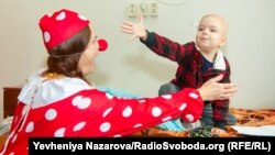 Клоунський образ волонтерки майже готовий: чорне трико та легінці, яскраво-рожеві фітинова спідниця та шапка-ковпак. Останній штрих – підфарбувати губи. І жінки рушають кликати дітей, котрі лежать у відділенні, на міні-свято, що влаштовують разом з іншими волонтерами та представниками Червоного Хреста.
