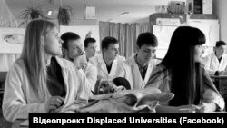 У зв’язку з проведенням антитерористичної операції в Донецькій та Луганській областях та окупацією Криму 18 вищих навчальних закладів були змушені переїхати в інші міста. Про те, як вони ставали на ноги, розповідається в документальному фільмі Displaced Universities.