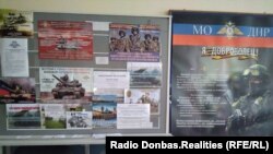 А вот в Донецком «центре занятости» сразу на входе расположен стенд с призывом влиться в ряды «армии» группировки «ДНР».