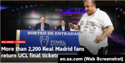 19 травня іспанське ЗМІ повідомило, що близько 2200 вболівальників футбольного клубу «Реал Мадрид» повертають квитки на фінал Ліги чемпіонів УЄФА, що відбудеться 26 травня в Києві. Від самого початку в лотереї за право отримати один із виділених 12802 квитків для «Реалу» взяли участь 24268 власників сезонних квитків іспанського клубу. Як стверджували ЗМІ Іспанії і, наприклад, видання Independent, понад дві тисячі фанатів «Реалу» здали ці квитки, пояснюючи це проблемами з логістикою і цінами. Зокрема, писали в ЗМІ, це пов’язано з дорогими перельотами й завищеними цінами на житло в Києві.