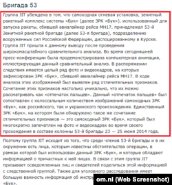 А далі у тексті пояснюють, як саме це пов’язано з 53-ю бригадою військ протиповітряної оборони Росії.