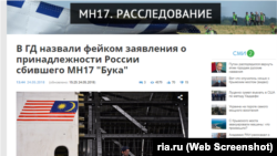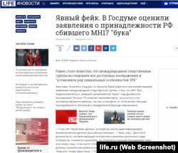 Так, наприклад, сайт російського каналу «Life» (колишній LifeNews) вийшов із заголовком: «Явний фейк. У Держдумі оцінили заяви про належність Росії установки «Бук», якою збито MH17».