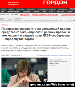 «Президент України Петро Порошенко на наступному тижні представить законопроект про рівні права. Про це журналістам після завершення «Маршу рівності» повідомила депутат Європарламенту Ребекка Гармс», – повідомили, наприклад, на сайті телеканалу «112 Україна» (цей та інші ЗМІ посилалися на повідомлення агентства «Інтерфакс-Україна», яке пізніше було видалене – ред.).