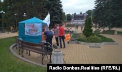 Цікаво, що намети організаторів залишилися ще з часів Євро-2012. Саме під такими тентами працювали волонтери Інформаційного туристичного центру в 2012 році. «Tourist Information Point» та «Host City Donetsk» – такі написи красуються на них і нині, от тільки змагань, де могли б знадобитися такі шатри, у підконтрольному російським гібридним силам місті більше немає...