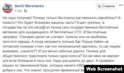 Дописувач Олег Магдич також називає вартість розмитнення авто завищеним: «Більш-менш пристойне авто я зміг дозволити собі ближче до 40 років… І я не хочу, щоб мої сини йшли моїм шляхом. Я хочу, аби вони з 20 років могли заробити собі на пристойне авто».