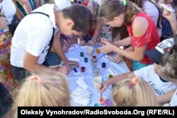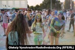 14-летняя северодончанка Аня с подругами для этого даже заранее сама купила краски, несмотря на то, что организаторы вечером раздавали их бесплатно.