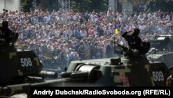 Традиційна офіційна церемонія військового параду здебільшого запам’ятовується телевізійною картинкою. Українські військові проходять головною площею столиці – майданом Незалежності, де перебуває усе найвище військове та політичне керівництво країни. Однак чимало людей не слухають довгі промови і не слідкують за традиціями параду. Кияни та гості столиці прийшли подивитися на техніку, яку демонструють у Києві. Але більше за все люди хотіли побачити воїнів, які брали чи беруть участь в обороні України на сході держави.