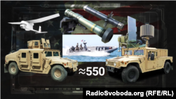 Українська армія від США отримала понад 500 основних зразків озброєння – комплекси Javelin («Джавелін»), станції контрбатарейної боротьби, позашляховики, безпілотники і катери.