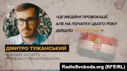 «Чітко видно: якщо з 2014 року проросійські медіа розігрували русинську карту, оголошуючи кожні півроку русинську автономію, то вже з 2014-2015 року почали проголошувати «угорську» автономію. Це такі провокації медійні, але на початку цього року дійшло значно далі»,каже політолог, експерт з українсько-угорських відносин Дмитро Тужанський.