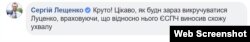 «По самому Луценку, коли він сидів незаконно, ЄСПЛ думав чи не рік. На голодування Сенцова правило 39 Регламенту взагалі не застосовувалось! Ситник важливіший, ніж Сенцов?» – запитує політичний оглядач Віктор Уколов, якого пов'язують із Адміністрацією президента.