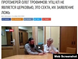 В інтерв’ю протоієрея Олега Трофимова видання взагалі заперечує зняття анафеми із глави Української православної церкви Київського патріархату Філарета: «Релігія наражається на русофобську політику Порошенка, який виконує замовлення Заходу. Оскільки режим Порошенка пішов на таку брехню, значить будуть провокації й приведе це до великої крові в Україні».