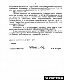 У вересні представники Мінекології України зверталися до ПрАТ «Юкрейніан кемікал Продактс» з проханням надати інформацію про виробничу діяльність її філії в Армянську, позаштатні ситуації та викиди забруднювальних речовин, починаючи з 20 серпня. Але в компанії повідомили «про відсутність можливості надання відповідної інформації», розповів заступник міністра екології та природних ресурсів України Віктор Вакараш.