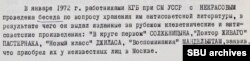 «КДБ при РМ УРСР вживає заходів для використання негативного ставлення української еміграції до Солженіцина в інтересах нашої держави», – повідомлялося в одній із записок. До кампанії проти письменника чекісти підключили «прогресивні» (лояльні до СРСР) структури американських українців. У низці газет діаспори вийшли статті «про одностайне засудження радянської громадськістю антинародної діяльності Солженіцина».