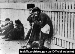 Перші дні вона ще рухалась, щось шепотіла, коли хтось зупинявся коло неї, а чим далі, день за днем, замовкала все більше, лежачи вже без руху, лише мляво зводила очі праворуч... ліворуч..., чи надовго ставила свій погляд сторч, втоплюючи його в блакитну імлу гарячого літнього, байдужого неба. Нарешті – вмерла. Труп пролежав з добу, роздувся ще дужче й зрештою зник. Міліція кудись відтягла й закопала… Агонія бабина тяглась довше звичайного тому, що прохожі, видко, хоч трохи підгодовували її своїми пожертвами. Проте, ніхто не міг врятувати її від смерті, бо всім бракувало їжі, всі голодували».