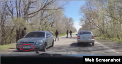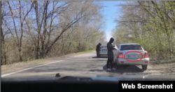 Місце зйомки встановити важко, адже на ньому відсутні об’єкти для географічної прив’язки, але можна добре розгледіти державні номери двох автомобілів.