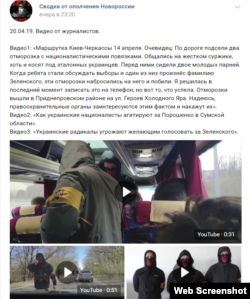 Ті ж самі невідомі, що назвалися «Організація українських націоналістів «Хвиля», записали відеозвернення з погрозами на адресу людей, що голосувють за Володимира Зеленського.
