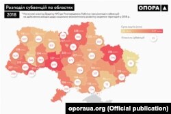 Результати досліджень «Опори» демонструють, що розподіл субвенцій між різними областями нерівномірний. Так, співмірні за кількістю населення та площею області отримують діаметрально протилежні кошти на розвиток. Це стосується і виборчих округів.