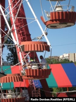 Из старинных – и колесо обозрения. С него видно центр Донецка, телевышки на Куйбышева, стадион «Шахтер», копры шахты Горького, общежития Донецкого национального университета.
