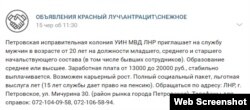 Оказывается, в колонии недостаточно персонала, чтобы справляться даже с пищевым блоком. В учреждение ищут сотрудников «младшего, среднего и начальствующего состава» для работы на кухне и непосредственно с заключенными. Обещают зарплату от 13 до 20 тыс. российских рублей (приблизительно 5 230 – 8 050 гривен), возможность бесплатно учиться в местной академии «МВД» и ранний выход на пенсию – от 15 лет стажа.