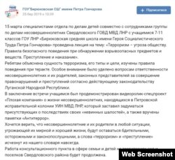 Запись называется «Плохая компания»: ее нет в открытом доступе, зато ее показывают в школах Свердловского района (Луганская область).