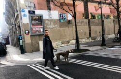 Дві бабусі перекрикуються кожна зі своїх балконів, хтось голосно слухає музику. Пси на балконах гавкають, радісно запримітивши наші фігури на спорожнілих вулицях. Проїздить поліцейська машина і ні в кого не питає показати дозвіл – ні в мене (я з очевидним артефактом – собакою), ні в літнього пана, що прогулюється, не дивлячись на спеку, в кашеміровому пальто і теплому шарфі.