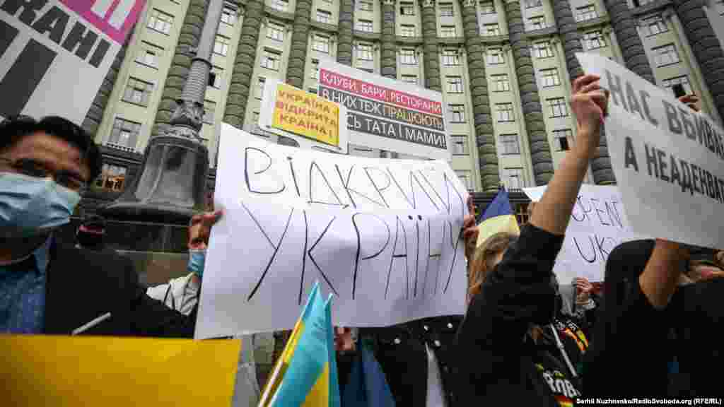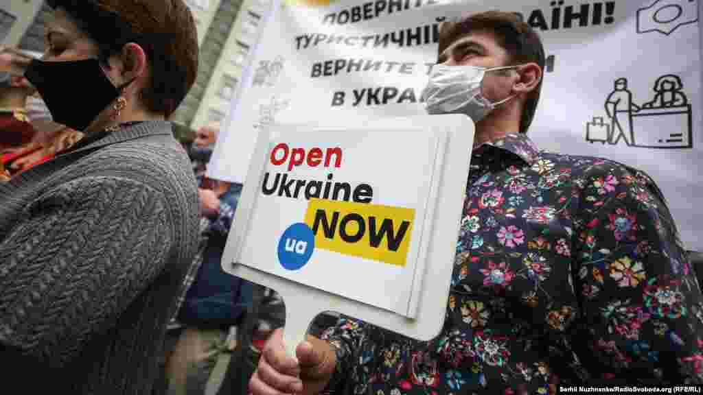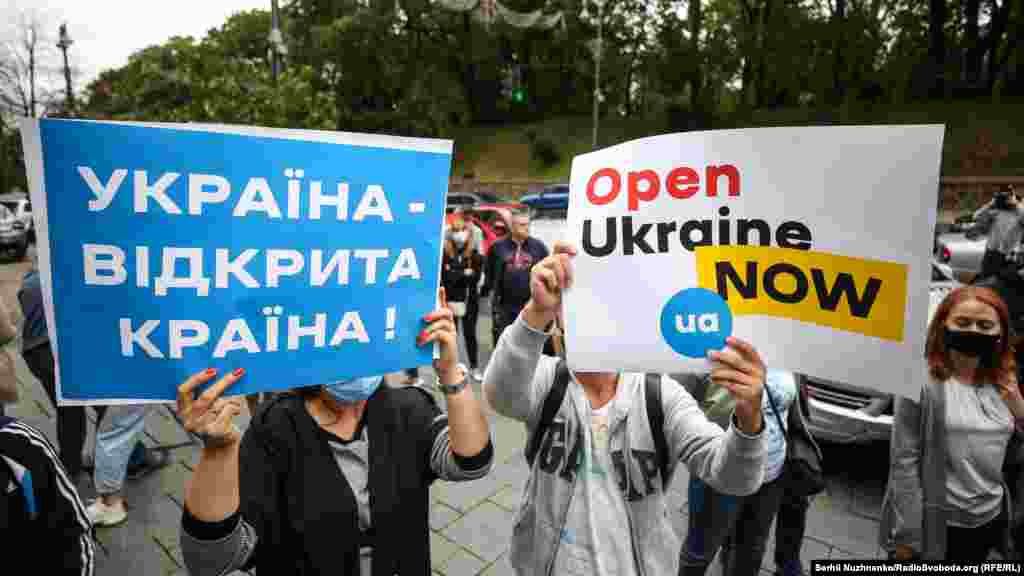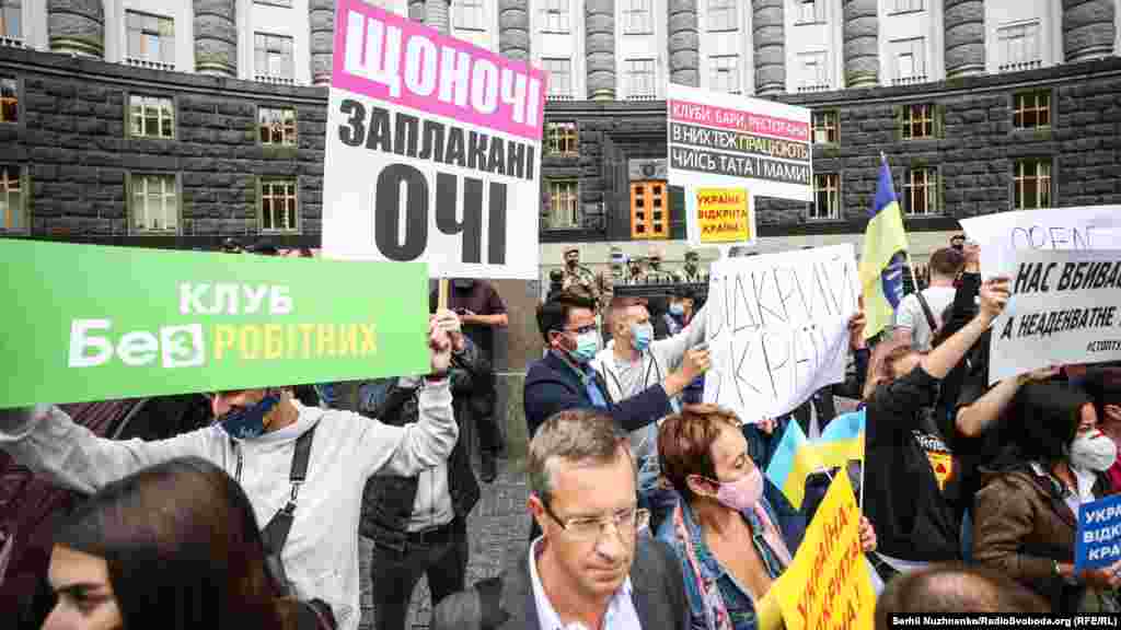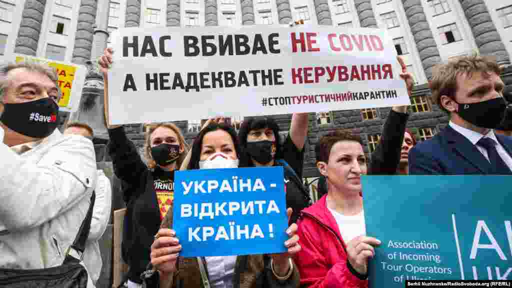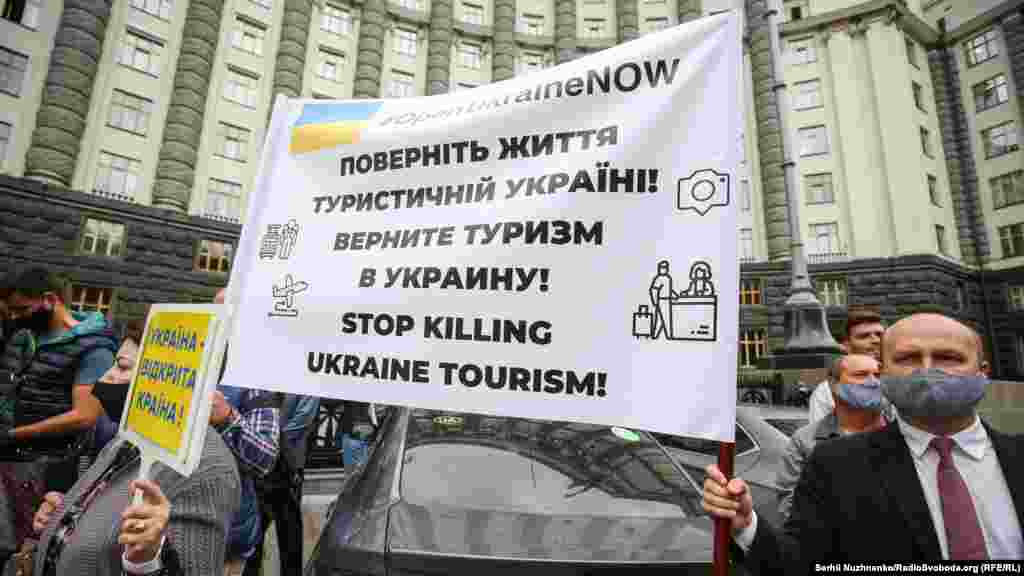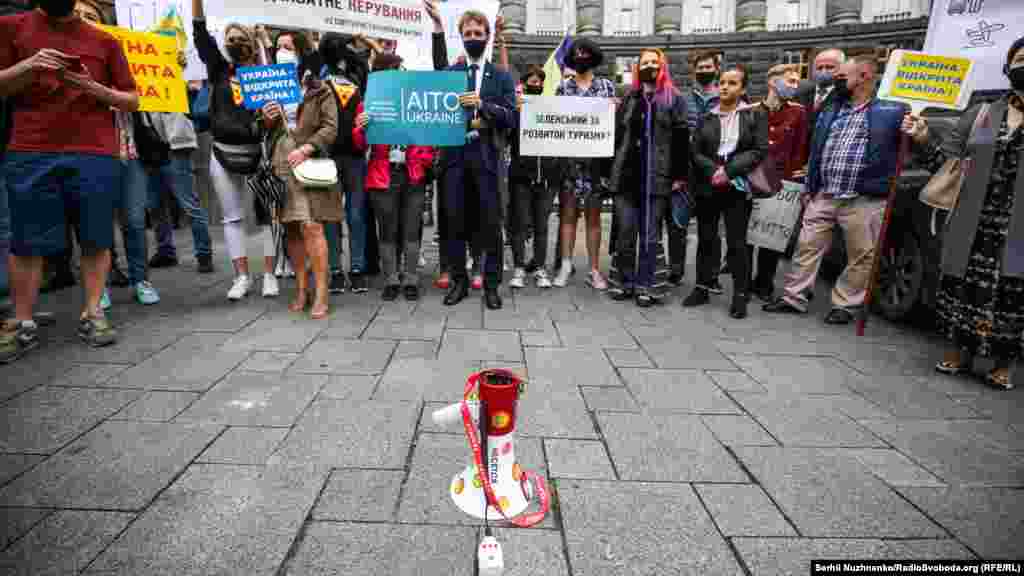 Акції протесту представників туристичної галузі та розважальних закладів біля Кабміну, Київ, 28 серпня 2020 року