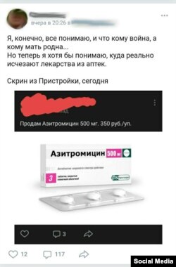 Серед місцевих знайшлися ті, хто вирішив заробити на препаратах. Так у соцмережах антибіотик «Азитроміцин» продають за 350 рублів (близько 128 гривень), хоча його середня ціна в ОРДЛО раніше була 70 гривень (близько 192 рублів).