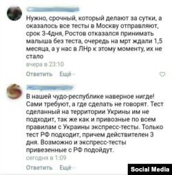 «Вони не просто не контролюють, вони ще й не дозволяють нам зробити бодай щось, щоб було всім легше. Ми записалися на МРТ ще два місяці тому. Знали, що треба буде зробити тест, щоб перевіритися, чи не хворіємо ми на коронавірус. Вирішили зробити тест в Україні у приватній клініці. Приїхали з результатами, але у нас їх не прийняли. Кажуть, що вони «з України» і, скоріш за все, неправдиві, бо ми «КПВВ проїжджали, а там купа народу». Типу, якщо ми поїдемо в Росію чи до Донецька, там купи людей не буде? У Луганську ж зробити тест неможливо. Кажуть, треба тільки російський тест. Замовили тест у знайомих, мають надіслати нам, потім ми зробимо тест, надішлемо до Росії, там 3-4 дні будуть його перевіряти. І їм же все одно, що у моєї дитини проблеми, що вона рве від тиску, що її треба постійно перевіряти та контролювати», – описує ситуацію жителька Луганська Ірина.