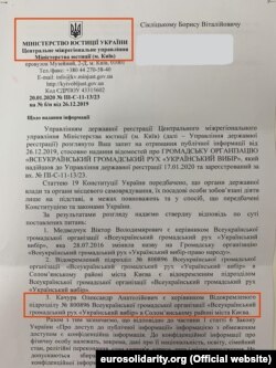 По-перше, як ви можете пояснити, чому і відповідно до даних системи YouControl, і відповідно до офіційної відповіді Мінюсту, оприлюдненої у ЗМІ, поряд з прізвищем «Качура Олександр Анатолійович» стоїть позначка «керівник Відокремленого підрозділу № 800896 Всеукраїнської громадської організації «Всеукраїнський громадський рух «Український вибір» в Cолом'янському районі міста Києва»?