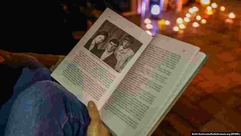 Декілька десятків активістів зібралися 20 жовтня ввечері в Києві на читання при свічках книги Вахтанга Кіпіані «Справа Василя Стуса». Читання влаштували на символічному місці, де свого часу було засуджено Стуса до ув’язнення, а нині на цьому місці розташований Печерський районний суд вже незалежної України.