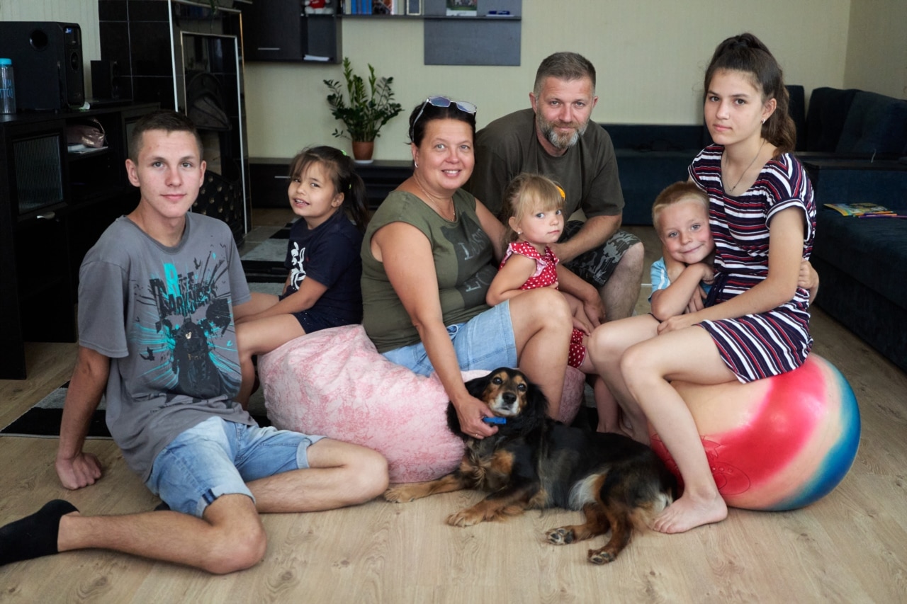 Ще до бойових дій родині, за державною програмою, почали будувати житло у нині підконтрольному формуванню «ДНР» Первомайську. Приватний будинок, про який мріяли діти й дорослі, зрештою, так і залишився за лінією зіткнення. На Луганщині Юрій, Світлана, їхній менший син Марк та прийомні дітлахи тіснилися у двокімнатній квартирі. Але 2018-му, за тією ж-таки державною програмою, родині все-таки придбали житло. Тепер двоє дорослих та восьмеро дітей живуть, хай майже на фронті і з купою побутових недопрацювань, але у власному чималому котеджі